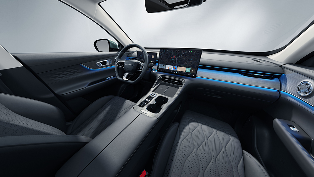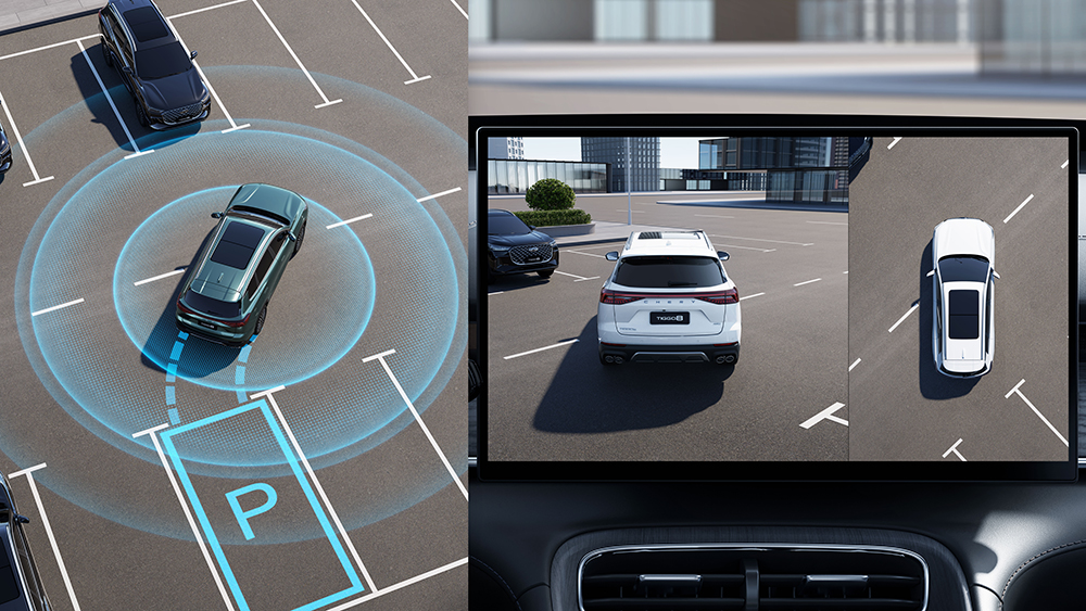The TIGGO 8 interior offers a digital instrument cluster with a 10.25-inch display, a large multimedia touchscreen with a 15.6-inch diagonal, as well as wireless Android Auto and Apple CarPlay support and integrated navigation.